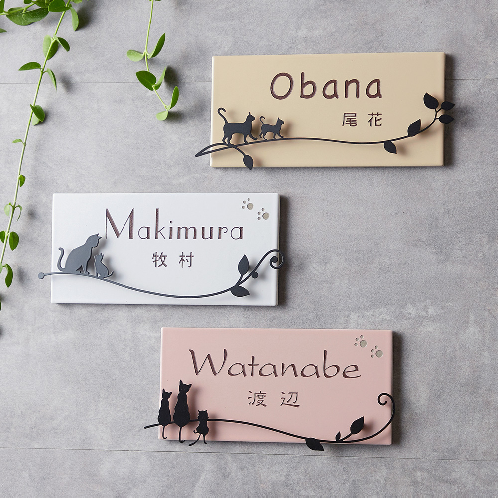 売り切れになっているデザインもあるほど人気の表札です。マンション用・戸建用が選べ、キャラクターのシルエットがさりげなくておしゃれ。